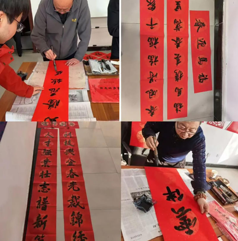 活动现场暖意融融,红笺铺展、墨香四溢。受邀书法家们现场挥毫泼墨,楷行隶草各展神韵,一笔一划间将真挚祝福倾注于笔端,创作出一副副寓意吉祥、年味浓郁的春联和形态各异的“福”字,让传统文化与新春气息交相辉映。